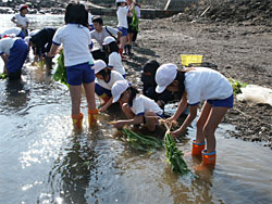 Y男:川は人々の遊び場ではなく、ゴミ箱になっています。これからぼくらは明るい未来をつくっていかねばならないのです。昔のことばかり振り返っても意味がないと思うでしょうが、昔のことを体験したり、振り返ったりすることで、未来をつくることができるんだと思います。昔の人は知恵をしぼり、自然といっしょに生活してきたんです。今となっては川はとりかえしのつかないところまできているのです。未来を変えなければならないのです。気持だけではダメ。実行しなければならないのです。協力してとりくめば、川とふれあえる日がくるはずです。