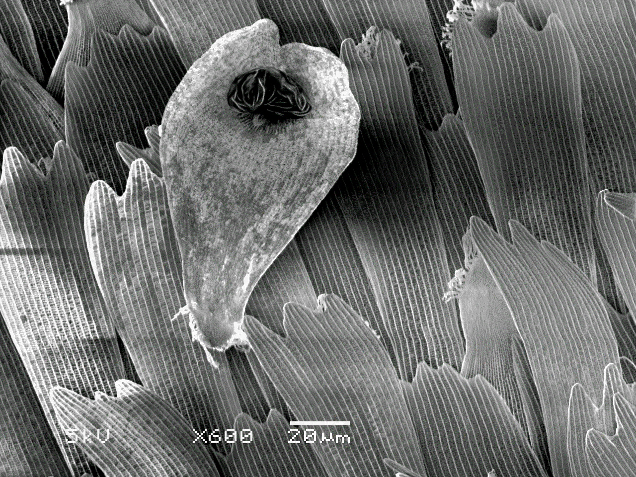 4. エゾスジグロシロチョウの発香鱗内面